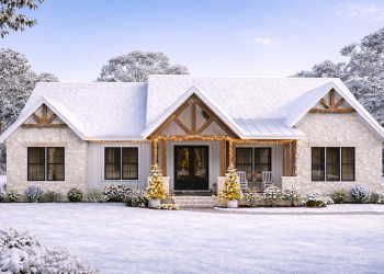 Read moreThis spacious barndominium design offers approximately 3,210 square feet of thoughtfully laid-out, single-story living space with five bedrooms and four...