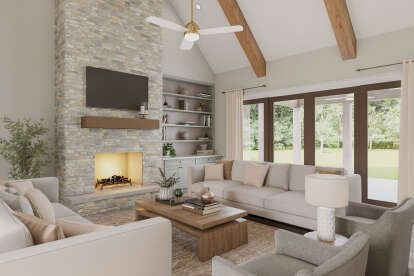 This modern farmhouse house plan offers approximately 2,594 square feet of well-organized living space designed to support comfortable family life, easy entertaining, and long-term flexibility. With 4 bedrooms, 3.5 bathrooms, and a thoughtfully planned layout that blends open-concept living with private retreats, this home strikes a refined balance between style and everyday practicality. Its clean farmhouse character, generous interior proportions, and efficient circulation make it ideal for families who want space without unnecessary complexity.