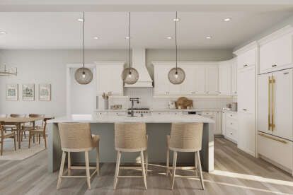 The kitchen is designed as both a functional workspace and a social anchor. Generous counter space supports meal preparation, while the layout keeps the cook connected to the dining and living areas. Whether preparing everyday meals or hosting guests, the kitchen remains efficient without feeling isolated.