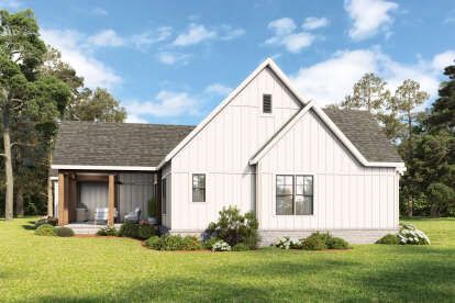 Carefully placed windows enhance both curb appeal and interior daylight, while the farmhouse styling provides flexibility for a range of exterior material finishes depending on personal taste or regional preferences.