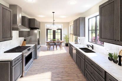 The kitchen is designed for practical function, with efficient workspace, storage cabinets, and room for standard appliances. Its proximity to the dining space makes everyday meals and entertaining effortless. 6