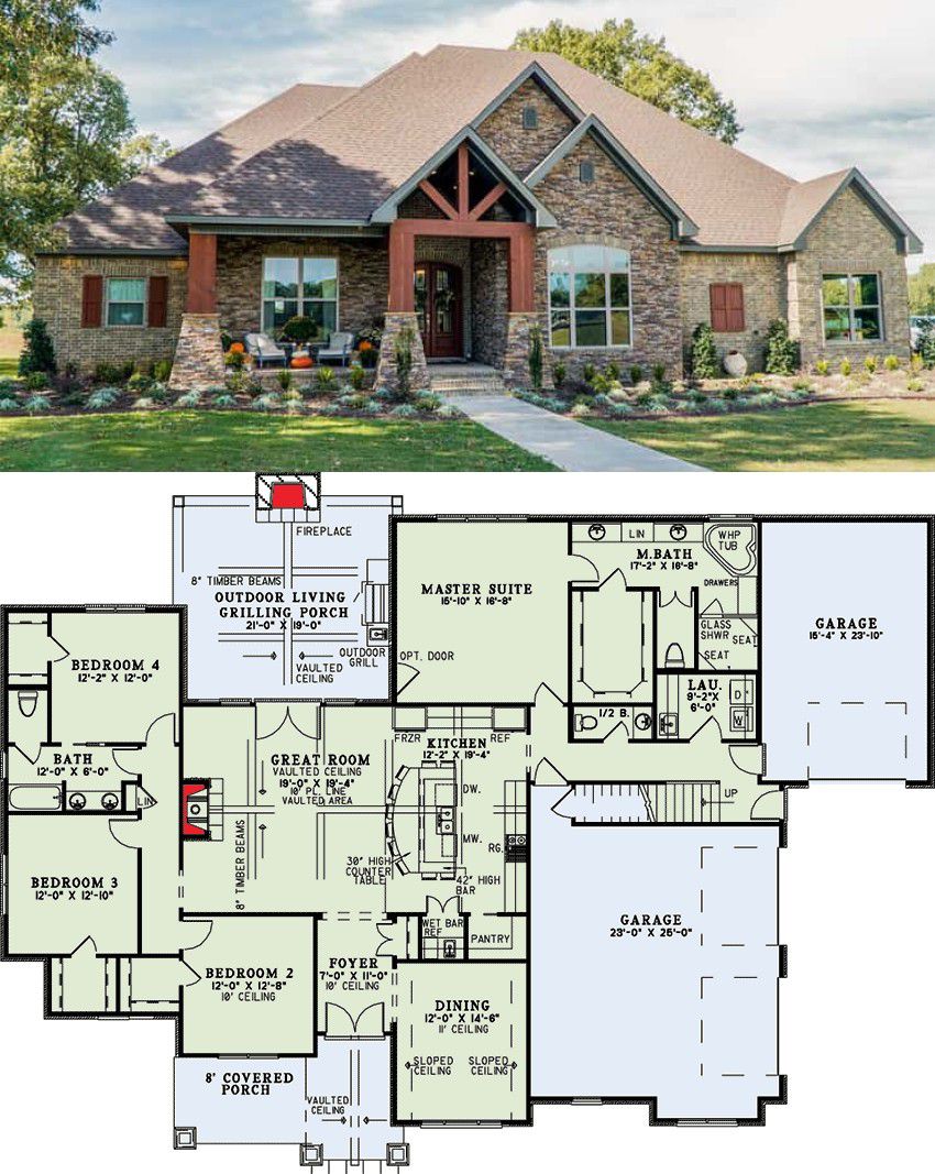 French Country Home – A Warm, Elegant 4–5 Bedroom Design with Flexible Living (~2,373 Sq Ft)