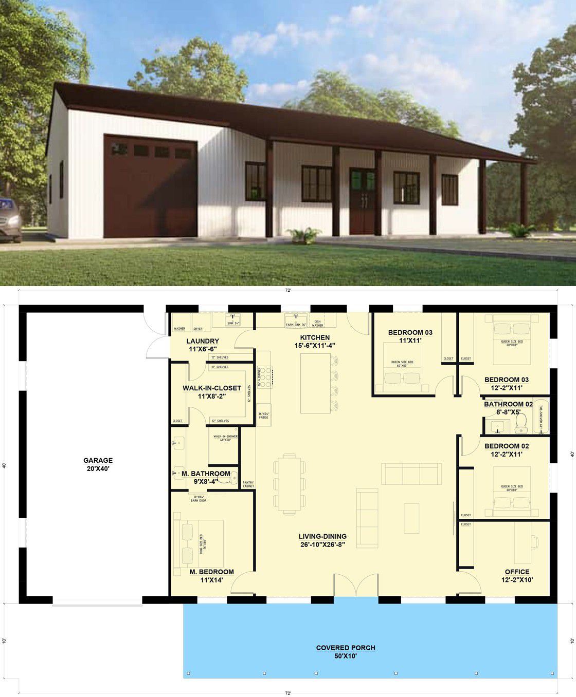 Modern Farmhouse Plan – A Thoughtfully Designed 3-Bedroom Home with 3.5 Baths (~1,928 Sq Ft)