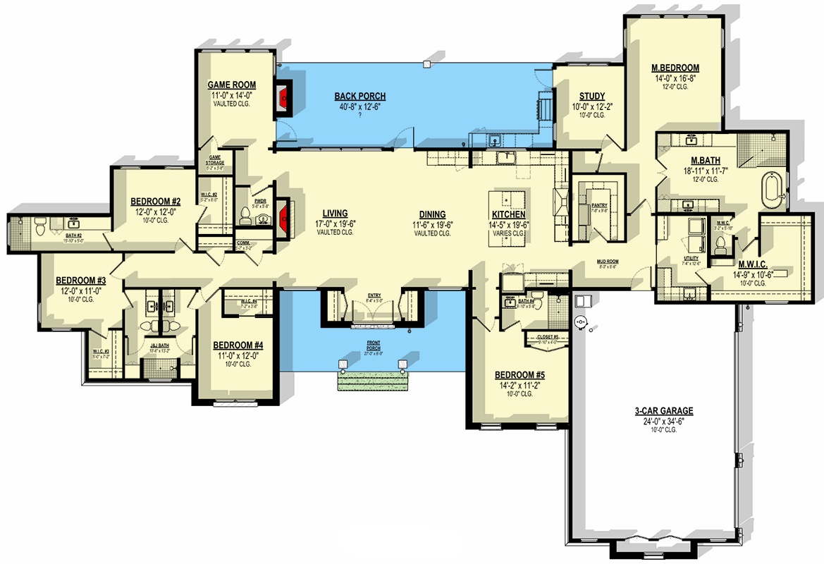 In addition to the master and casita, there are three more bedrooms—each well sized and designed for comfort. A prominent game room sits central to the plan, offering a zone for kids, casual movie nights or hosting friends. Storage is thoughtfully distributed: linen closets, built-in cabinets and near-garage storage zones keep daily life running smoothly without chaos.