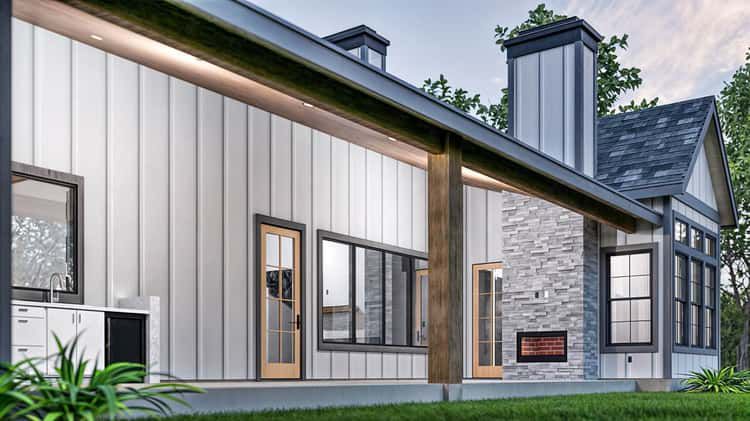 One of the home’s standout features is its built-in outdoor kitchen, which connects fluidly to the interior via glass sliders. It sits under a covered terrace, perfect for al-fresco dining or evening gatherings beneath the stars. The adjacent game room opens into this zone, so whether you’re hosting friends or keeping an eye on kids, indoor-outdoor interplay comes naturally. Landscaping around the terrace gives it privacy while maintaining a link to the broader property.