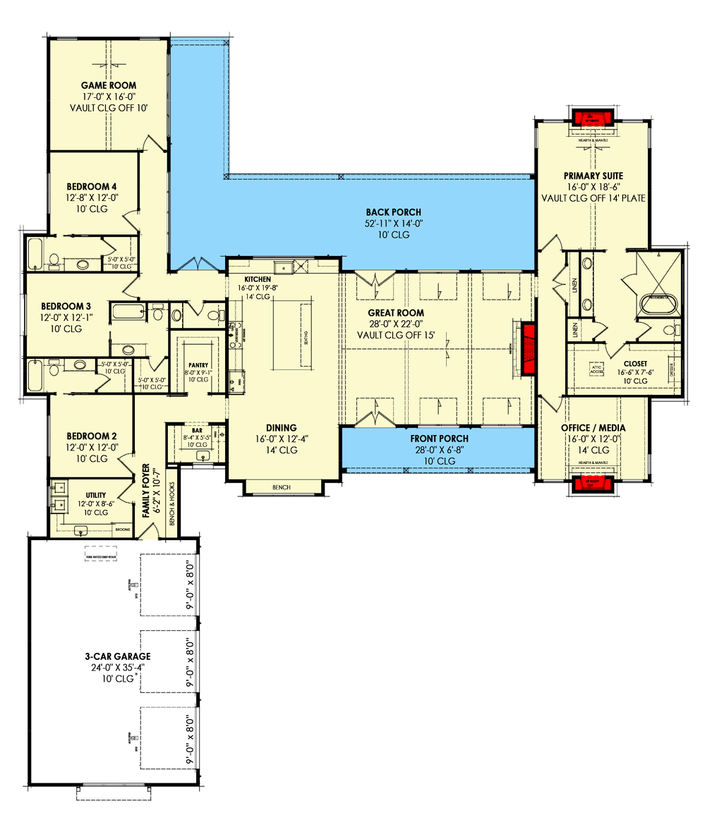 - Notable Features: Triple shed dormers front and back, two-story great room, multiple French doors to covered porches.