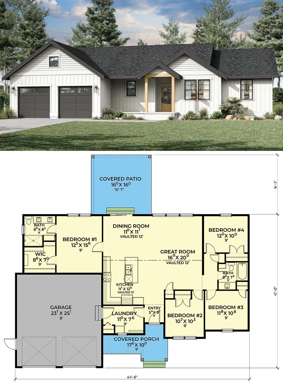 What makes this design stand out is the combination of clean mid-century aesthetic, flexible lower-level space and a layout that flows gracefully. It’s a home that looks sharp, lives smart and adapts easily. Whether entertaining guests, raising a family or creating a personal retreat, this plan offers both form and function in a beautiful package. 15