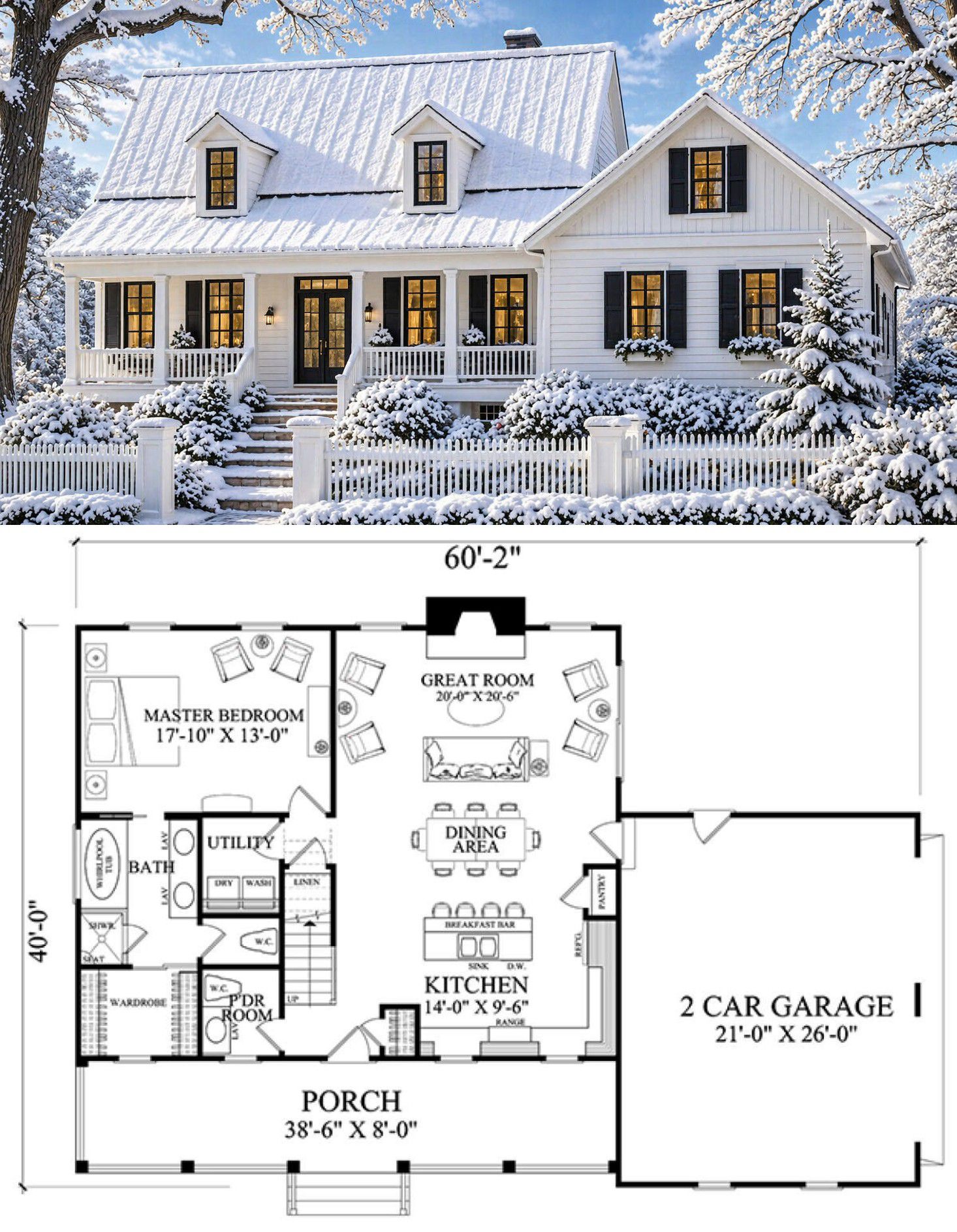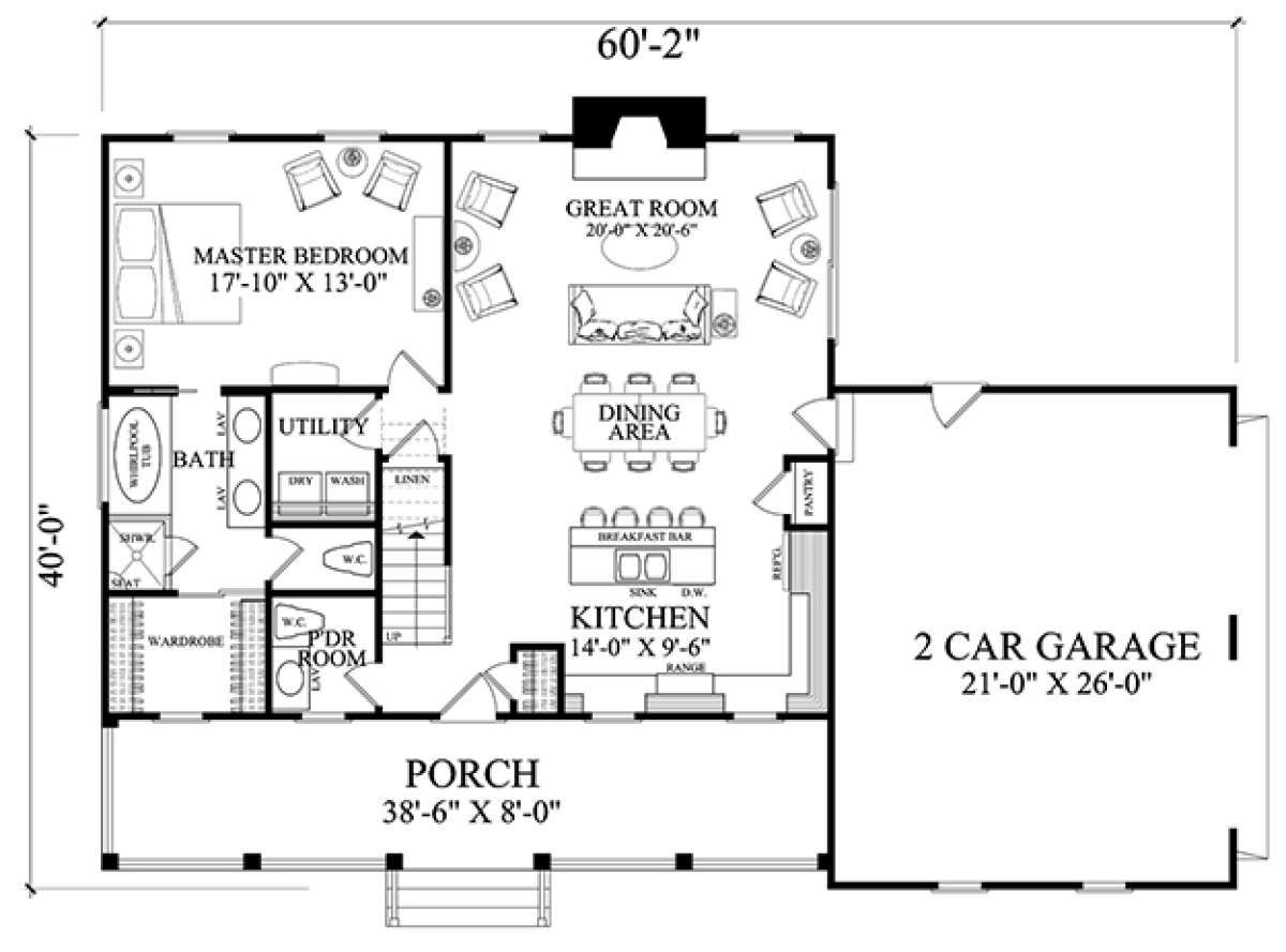 With overall dimensions of approximately 60 feet 2 inches wide and 40 feet deep, the home fits well on a variety of plot sizes. 2