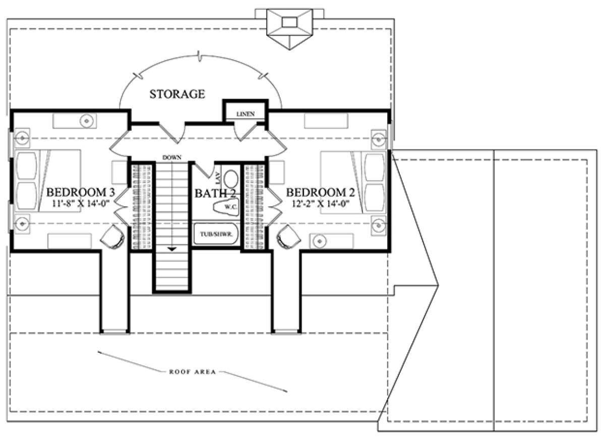 The additional bedrooms are positioned to provide privacy and flexibility for family members or guests.