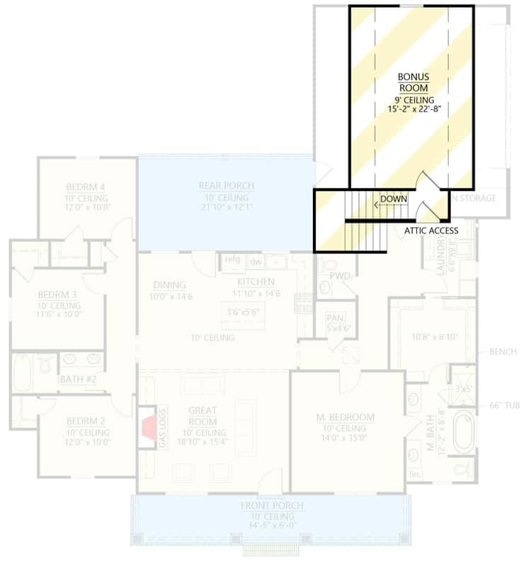 - Ceiling Heights: Main floor 10′; optional bonus 9′ 12