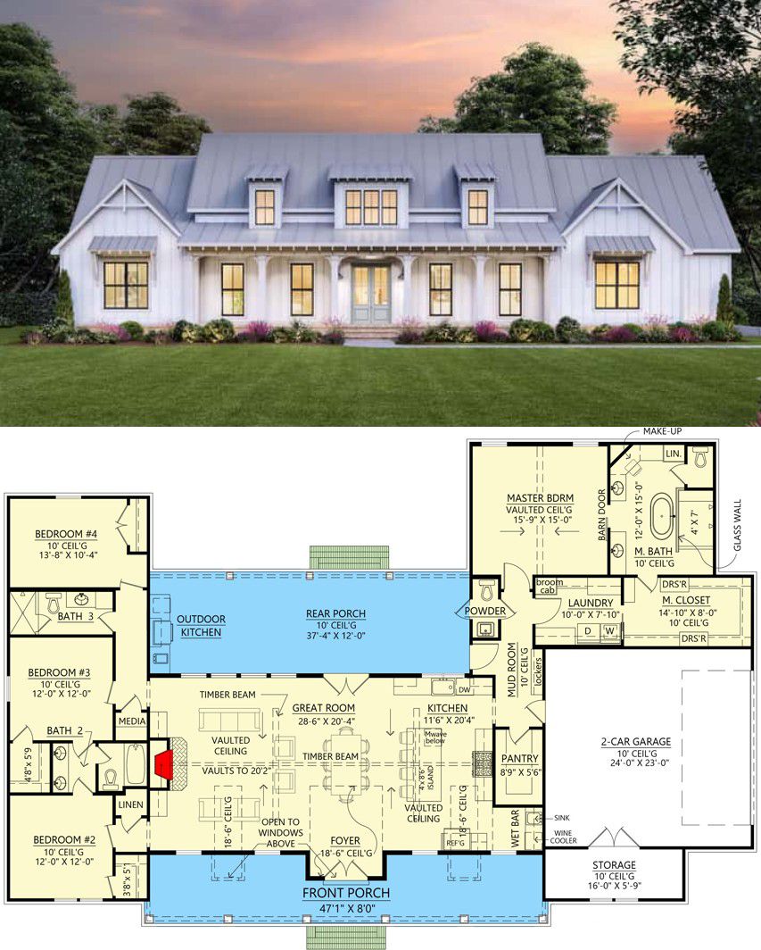 This modern farmhouse design succeeds where everyday living meets style. The vaulted volume and open plan invite connection, the outdoor living spaces broaden the experience, and the thoughtful layout keeps functional zones quietly efficient. It’s a home that feels welcoming for family life, yet refined enough for entertaining or future transitions. 15