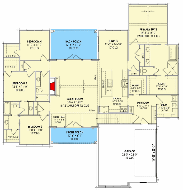 - Front porch for casual greeting and back porch for relaxed awning living—supporting indoor-outdoor flow in a meaningful way.