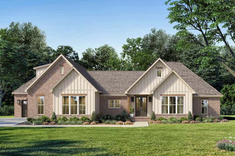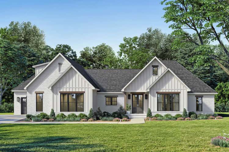 This home balances style and function beautifully. The modern farmhouse aesthetic is warm and current, the layout supports real-life needs, and the bonus room and generous garage add versatility. If you’re looking for one-level living that adapts to changing family demands while offering elegance and purposeful design—this plan delivers it.