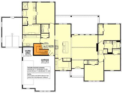 This modern farmhouse ranch layout provides about 2,557 sq ft of main-floor living with the option to add a roughly 415 sq ft bonus room above the garage. The plan includes 4 bedrooms (or 5 with bonus finish), 2.5 baths on the main level (3.5 total with bonus), and a generous 3-car garage (~1,006 sq ft). It blends casual country charm, modern farmhouse details and the ease of a single-level ranch. 0