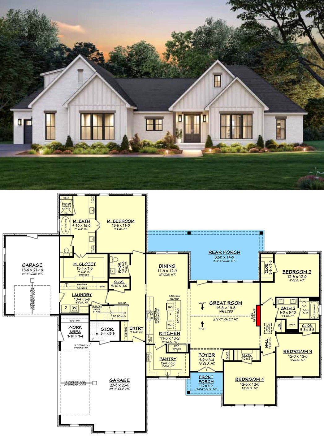 • Modern farmhouse styling paired with ranch convenience gives you character plus single-level ease.