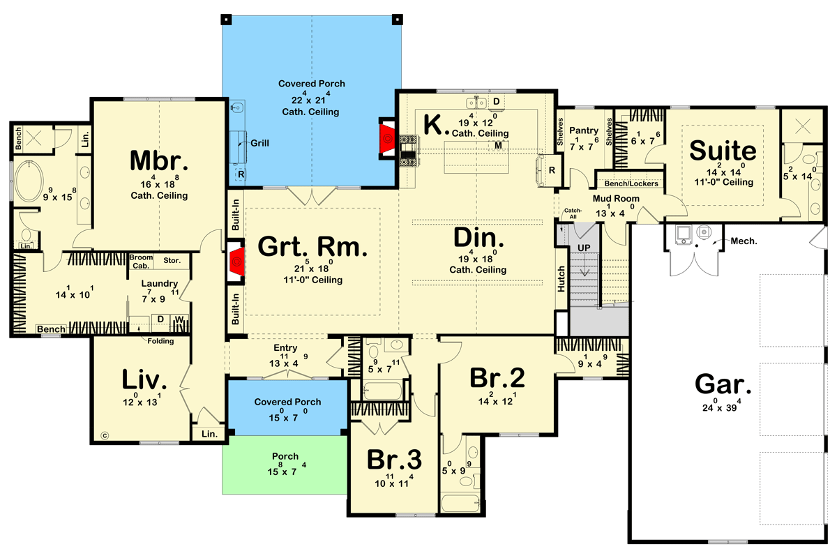Though the main footprint is essentially one level, the plan includes an upstairs unfinished bonus area (about ~651 sq ft of extra space) for future expansion, storage or hobby use. 5 This gives the home long-term adaptability without compromising the main living zone.