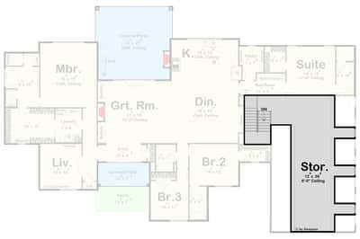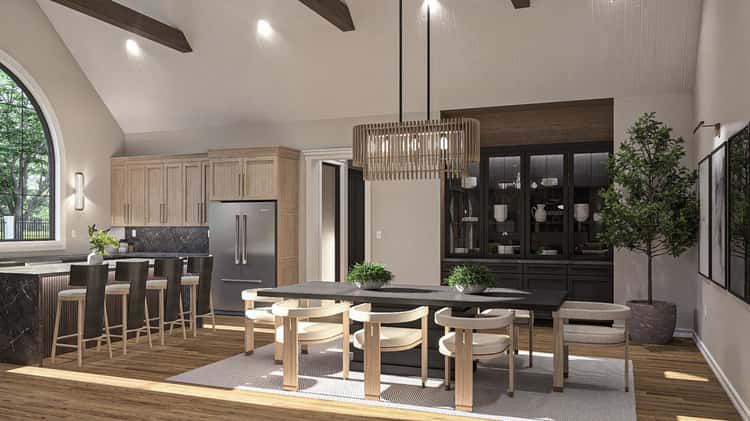 This beautifully styled modern cottage plan offers about 3,248 sq ft of living space, featuring 4 bedrooms, 4 baths, and a 3‐car garage. 0 Its vaulted kitchen and dining area deliver dramatic volume, while the thoughtful layout supports both comfortable everyday life and entertaining in style.