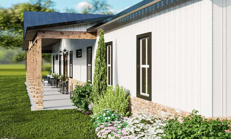 The wraparound identity is real: the rear porch connects directly to the great room through sliding doors, offering wide-open access for entertaining or lounging. 2 The deep porches on front and back frame the home’s width and support a lifestyle of porching, relaxing, socializing and enjoying the view. Ideal for farm/ranch settings, open lots or backyard expansion.