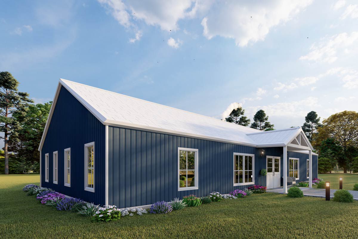 This one-level country ranch hits a sweet spot between size, livability and budget. With four bedrooms, an open heart of the home, smart service zones and a generous porch, it gives families space to live and breathe without excess. The split layout offers privacy when needed, the design keeps things straightforward and the porch adds charm and usable outdoor space. If you’re building for family comfort, ease of maintenance and approachable scale—this plan delivers.