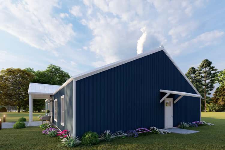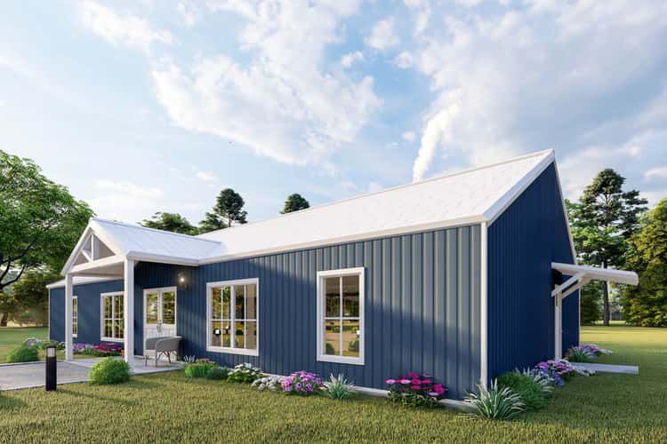The front façade spans about 62′ wide × 34′ 6″ deep (as specified) and features a simple pitch roof (~6:12), offering a clean, efficient silhouette. 1 The plan combines country charm with cost-effective details, making it approachable for many homeowners. A wide covered porch (429 sq ft) anchors the home’s social identity and adds substantial outdoor appeal. 2