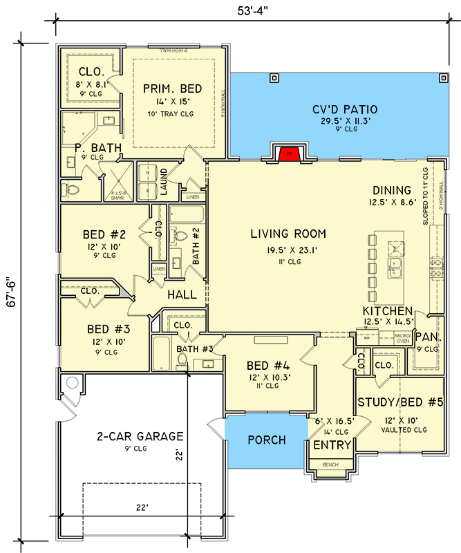 - Width × Depth: ~53′ 4″ × ~67′ 6″ 15