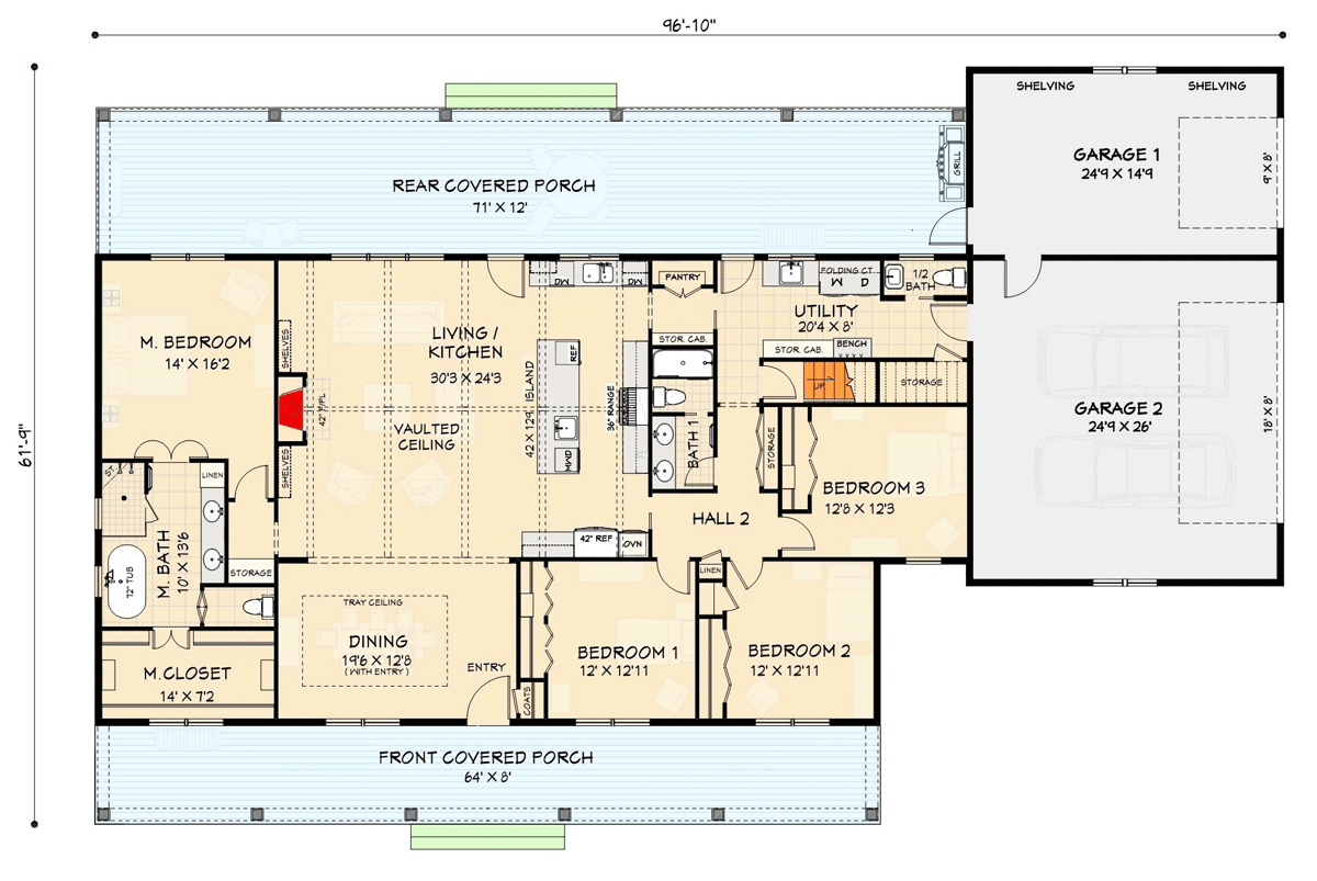 - Four bedrooms and multiple baths make this plan great for families, guests or multigenerational living.