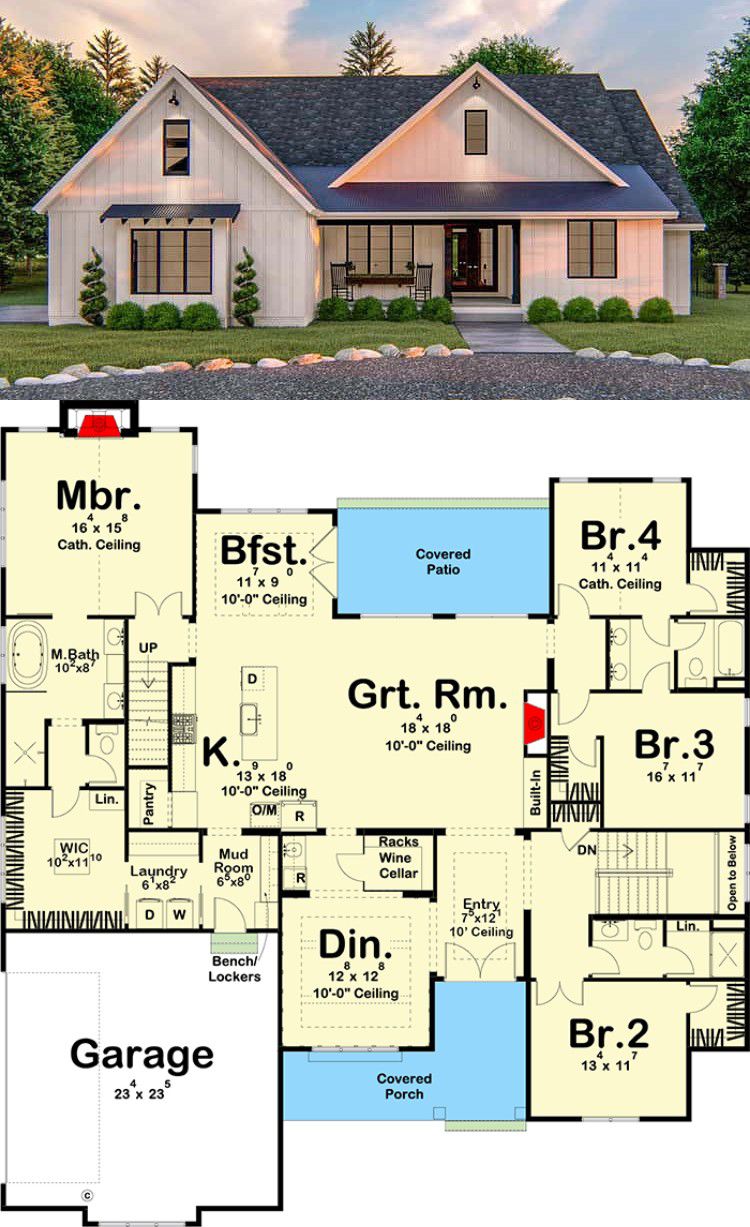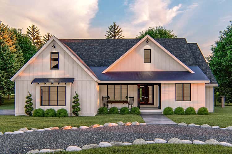 This modern farmhouse plan balances charm, practicality and flexibility with finesse. It gives you a cozy yet spacious home — with a smart split layout for privacy, a welcoming great room for connection, and bonus space to grow or adapt. Whether you’re raising a family, hosting guests, or building a forever home, this design offers elegance, livability and potential maturity with grace.