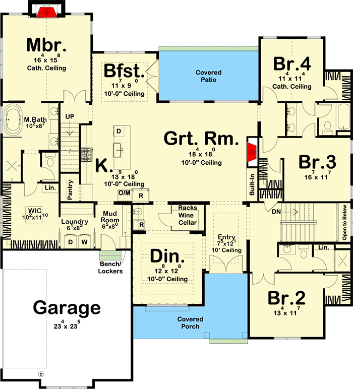 - The split-bedroom layout delivers privacy for the master suite while placing other bedrooms together — ideal for families or hosting guests.