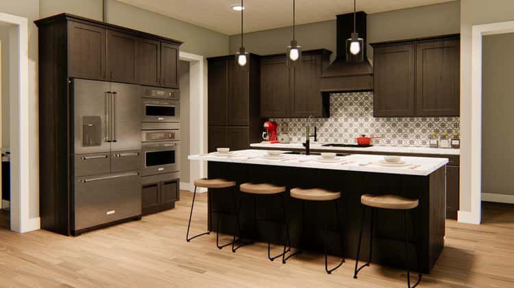 The kitchen is practical and modern, centered on a large island for cooking or meals, with a roomy walk-in pantry (or butler pantry) for storage. 6 This layout supports an open lifestyle: cooking, dining, and living blend seamlessly, making the home feel spacious and connected without wasted corridors.