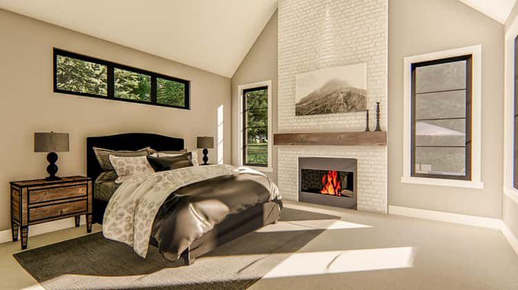 The master suite is tucked away from the other bedrooms — separated by the main living zone — offering privacy and a peaceful retreat. 7 It includes his/her vanities, a large walk-in closet with an island, and its own fireplace — touches that elevate comfort and functionality. 8
