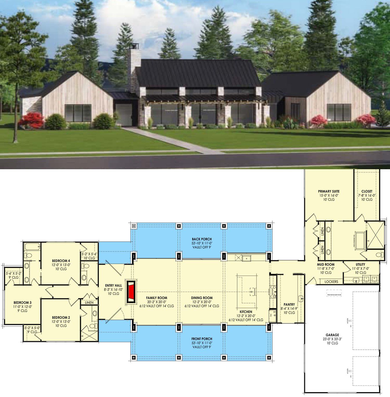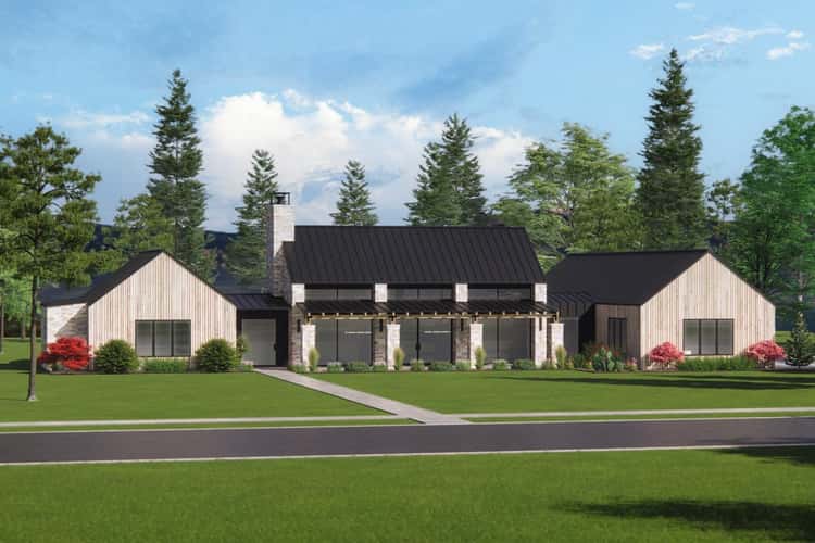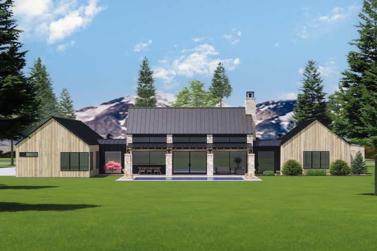 This New Zealand-inspired modern farmhouse strikes a beautiful balance between openness, indoor-outdoor living, and everyday practicality. With deep porches, glass walls, vaulted ceilings, and a layout that mixes shared living areas with private suites, it adapts easily to family living, entertaining, or quiet retreats. If you imagine a home where you can relax with nature, welcome guests with style, or just enjoy a bright, open flow — this design offers comfort, charm, and flexibility all in one welcoming package.