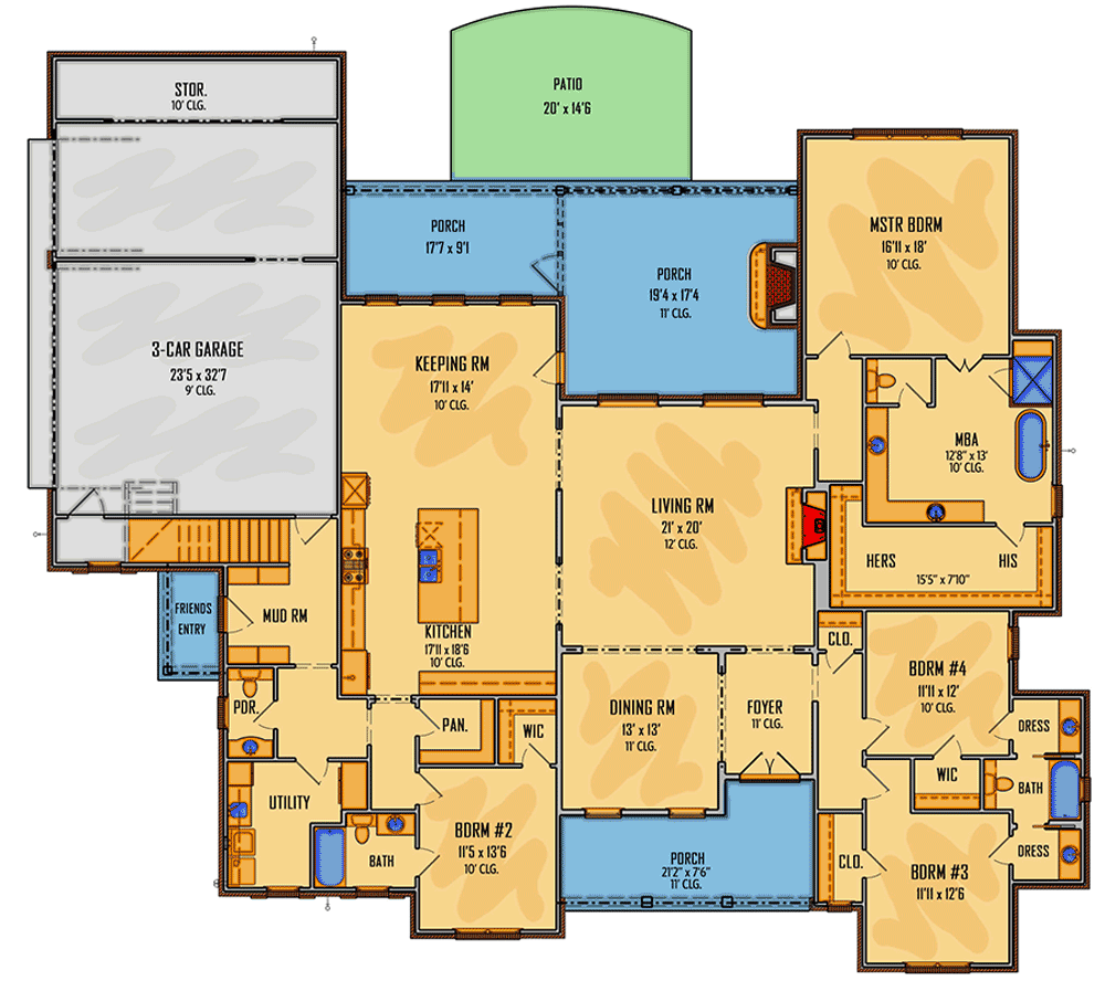 With 4.5 bathrooms, the plan supports a busy household: full baths for bedrooms, plus convenience for guests or common use. 10 The abundance of bathrooms reduces morning or evening congestion and offers flexibility for larger families or rotating guests.