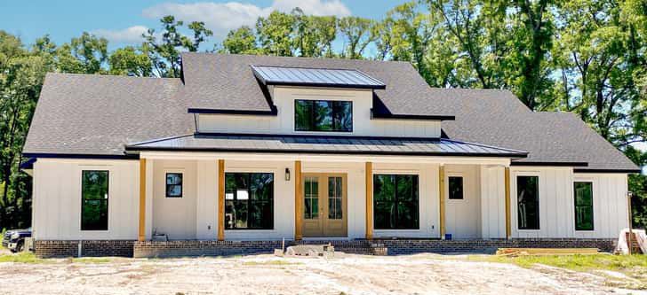 The exterior showcases classic farmhouse character — clean lines, modest rooflines, and a straightforward, welcoming presence. The design balances practicality with style, making it suitable for both suburban lots and rural settings. 1