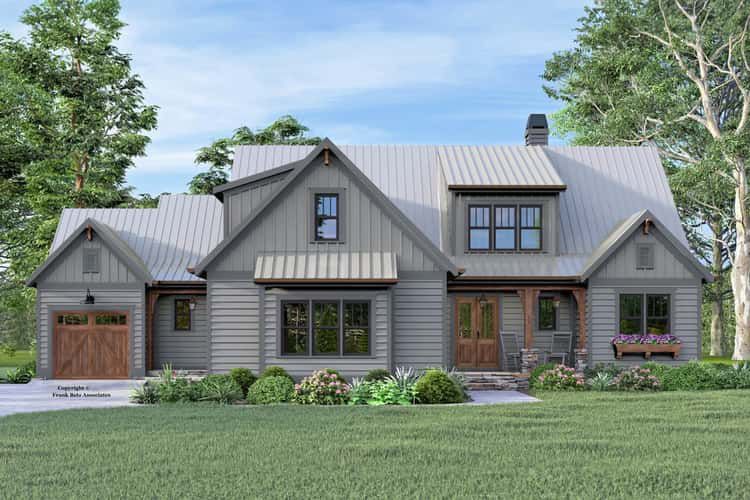 This thoughtfully designed modern farmhouse plan offers about 2,205 sq ft of heated living space on the main level with the option to expand upward for approximately an additional 750 sq ft — bringing flexibility, comfort, and space for changing needs. Featuring a vaulted family room, private primary suite, secondary bedrooms, and an optional upstairs bonus room with an additional bedroom and bathroom, this home blends smart layout planning with classic farmhouse style and modern convenience. 0