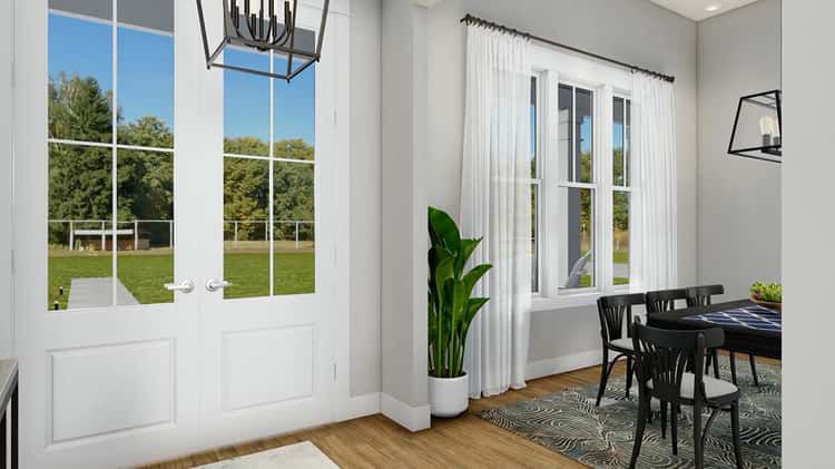 On one side of the foyer is a **den or home office**, and on the other side is a **formal dining room**, giving options for work, quiet time, or entertaining. 7