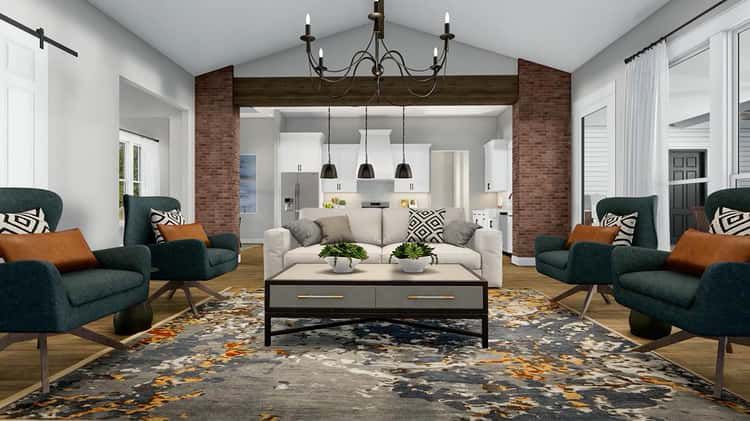 This plan is a thoughtful blend of charm and practicality. The balanced, symmetrical façade gives it curb appeal, while the open great room and kitchen area foster warm, connected living.