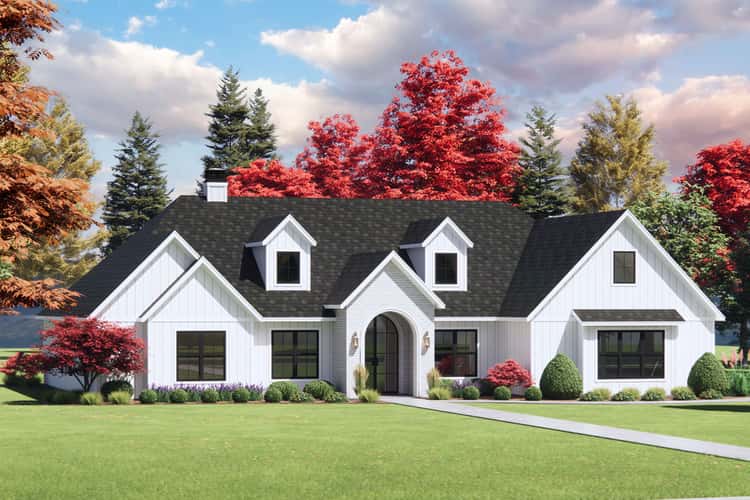 The design is described as European–Transitional. The exterior (in the renderings) combines classic European motifs with clean-lined transitional simplicity. The house plan’s mix of traditional elements (formal dining, walk-in pantry, structured bedrooms) with modern open-flow and lifestyle conveniences (home office, master-level laundry access, flexible bonus space) gives a balanced, timeless yet functional home.
