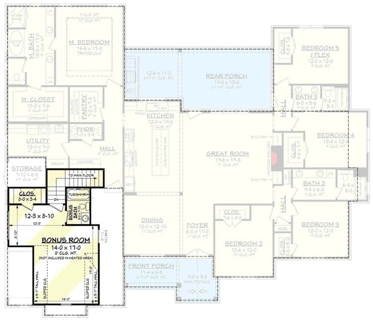 This house plan delivers roughly 2,985 sq ft of heated living space on the main level, with the option to expand into a bonus area of about 435 sq ft. With a flexible configuration offering 4 to 6 bedrooms, 3.5 to 4.5 bathrooms, and a thoughtfully designed layout, it’s a home built for families, growing households, or anyone wanting space to adapt over time. 0