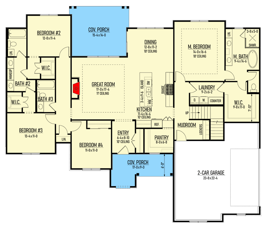The 4 bedrooms are arranged to balance privacy and convenience. The master suite offers a private retreat with its own bath, while the remaining three bedrooms share the other bath(s) — making the layout practical and versatile for families, roommates, or guests. 9 Because everything is on one level (with optional bonus above), the plan suits a wide range of lifestyles. 10
