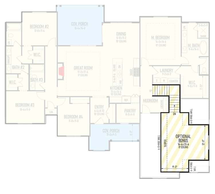 One of the plan’s standout features is the optional bonus room above the garage — roughly 298 sq ft of extra space. 11 It can easily serve as a guest suite, playroom, home office, hobby room, or private retreat — adding flexibility without increasing the home’s footprint. 12