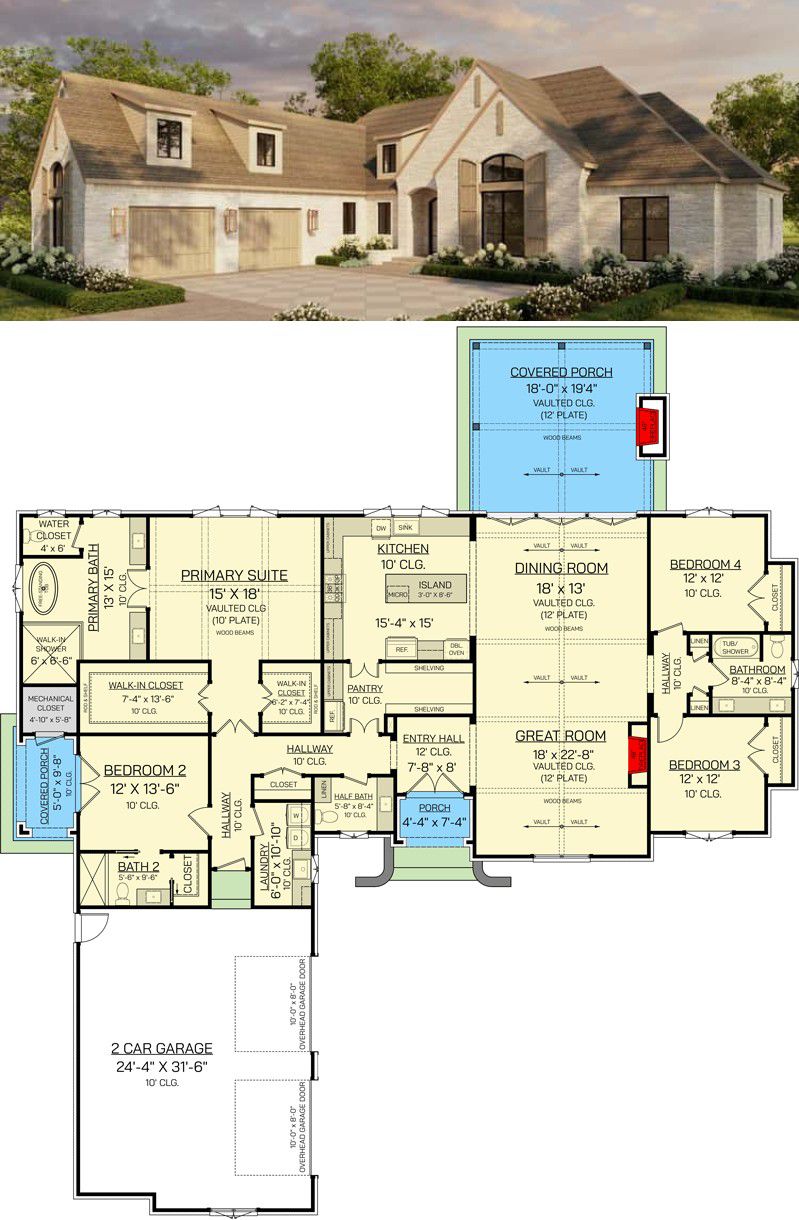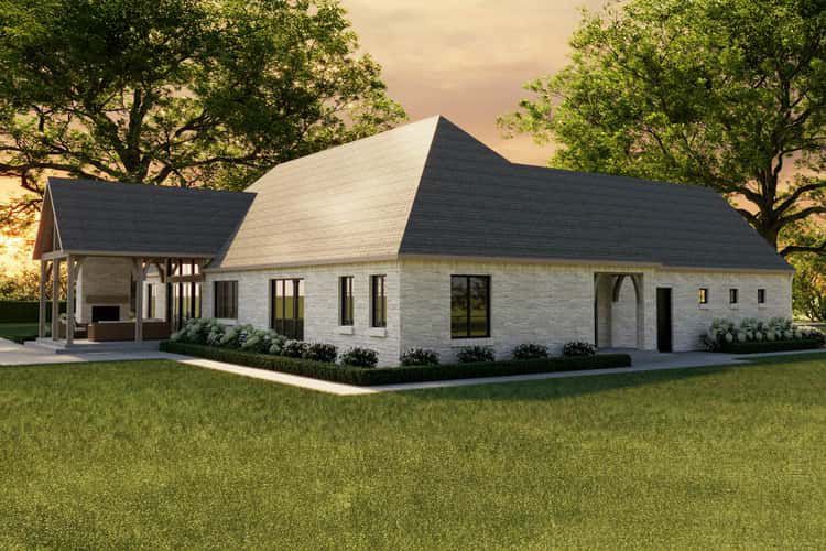 This French-country home plan offers a rare balance: timeless architectural charm and modern, family-friendly functionality. From the vaulted great room and elegant outdoor fireplace to the private guest suite and smart layout — it’s a home that works for everyday life, entertaining, and hosting guests. If you want a house where elegance meets practicality, privacy meets connection, and indoor-outdoor living feels natural — this plan delivers that harmony beautifully.