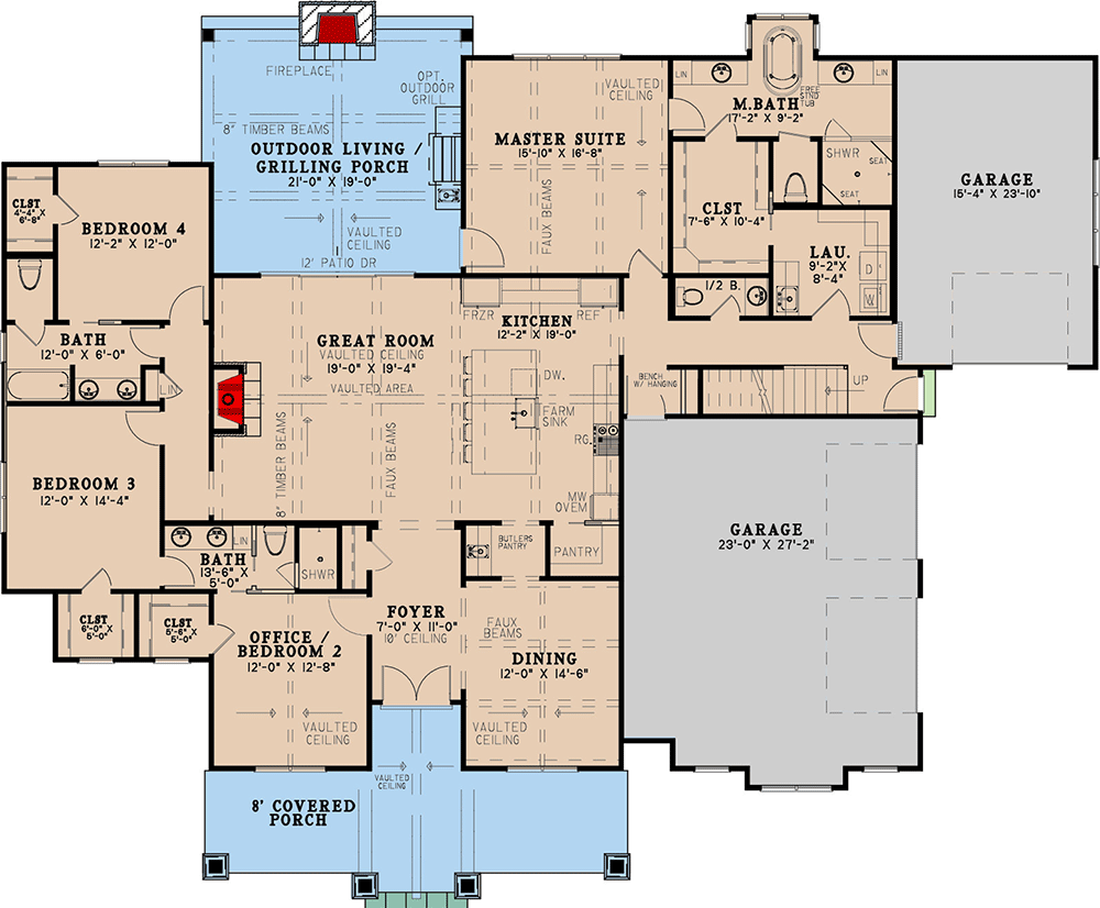 A standout feature of this plan is its large vaulted outdoor living / grilling porch — ideal for entertaining, relaxing, or enjoying meals under a sheltered but open space. 12 This outdoor area connects directly to the great room and master suite, offering easy indoor-outdoor transitions and making the home perfect for climates where outdoor living matters. 13