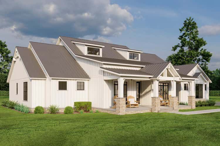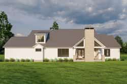 The façade, with clean lines and balanced proportions, gives the house presence without being overly large — suitable for rural or suburban lots alike. 1