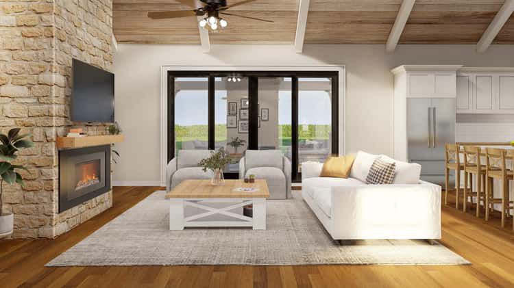 This modern farmhouse plan stands out because it offers the best of many worlds: modern styling, farmhouse warmth, flexible living, and a layout that makes everyday life easier — and more beautiful. Vaulted ceilings, generous windows, indoor-outdoor flow, and a smart floor plan make it an ideal home for families, couples, or anyone who values comfort, flexibility, and connection to outdoor living. Whether you’re planning for today or the future, this design provides a balanced, stylish foundation