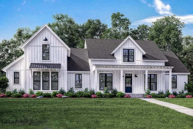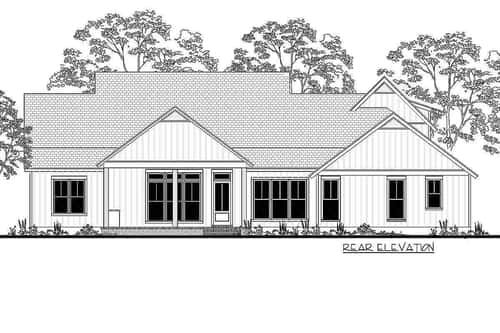 This modern farmhouse plan succeeds by combining an open, social heart with private bedroom zones and valuable bonus space. The main-level primary suite, flexible upstairs room, and strong indoor-outdoor connection make it adaptable for many lifestyles. It’s a design that feels welcoming on day one and remains practical for years, giving homeowners both style and smart functionality in one cohesive layout.