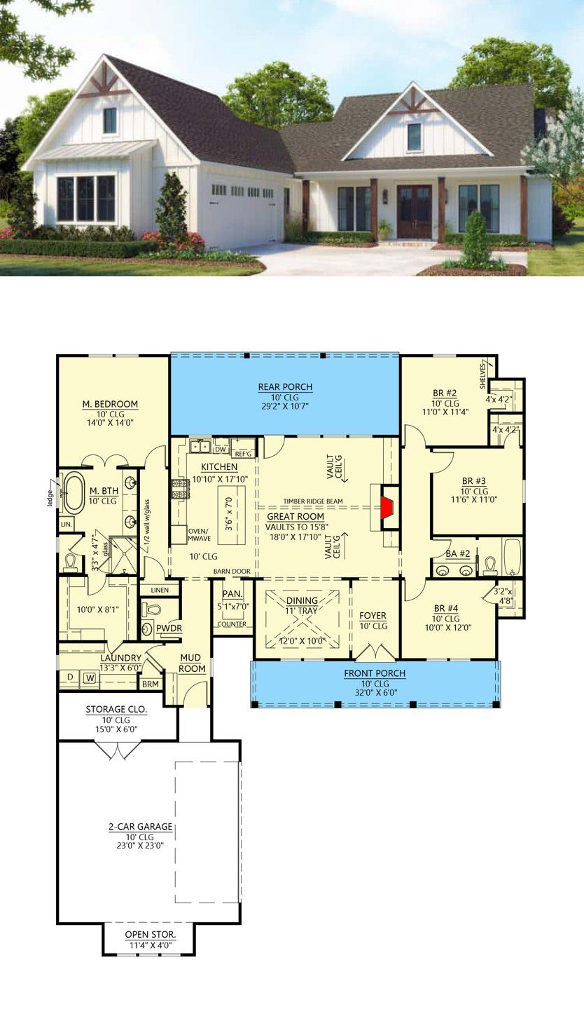 This 4-bed modern farmhouse strikes a thoughtful balance: it’s compact yet roomy; modest but complete; efficient yet comfortable. Its split-bed layout offers privacy, the vaulted great room invites connection and openness, and the storage/garage/mudroom setup keeps day-to-day life organized. For those looking for a “right-sized” home that handles family needs, guest accommodation, storage, and everyday convenience — this design is an excellent, low-maintenance, and welcoming option.