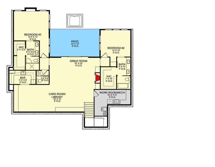 The plan includes a total of four bedrooms. Each bedroom has access to its own full bath (or shares in the case of secondary rooms, depending on layout), giving privacy and convenience to every household member or guest. 8 This layout is especially handy for families with teens, frequent guests, or multigenerational living arrangements.