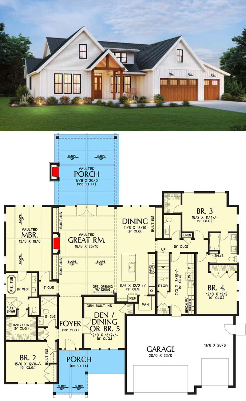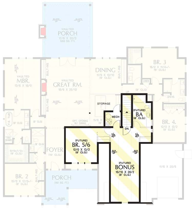 - Vaulted or beamed great rooms that create volume and draw light into the center of the home.