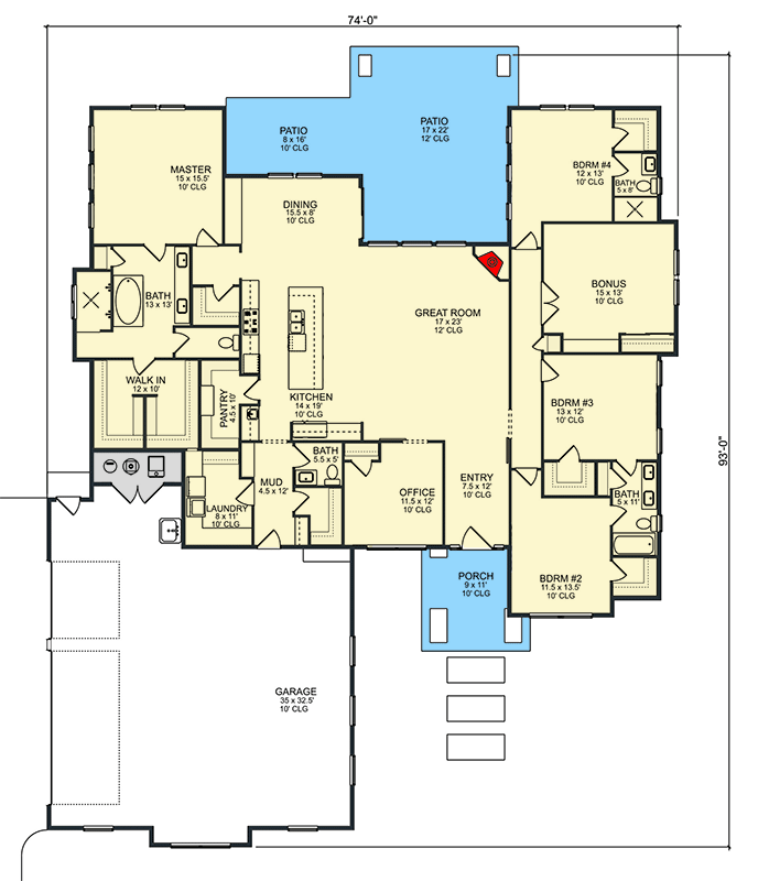 - Footprint / Dimensions: ~71′ wide × ~93′ deep 0