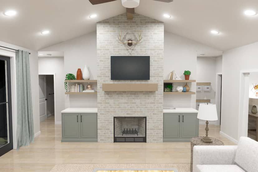 - Key Features: Vaulted family room with fireplace & built-ins; open kitchen–dining flow; roomy pantry; split-bedroom layout; dedicated home office; covered front porch and rear patio; indoor-outdoor flow; functional storage and thoughtful circulation. 14